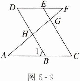 例 2 如图 5 - 3,已知 $ BD // CE $,$ \angle C = \angle D $,$ \angle A $ 与 $ \angle F $ 相等吗?