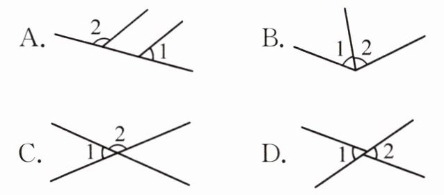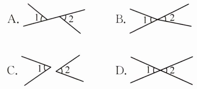 5. 下列各图中,可以判定$\angle 1与\angle 2$是对顶角的是 【 】