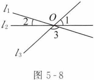 4. 如图 5-8,三条直线$l_{1}$,$l_{2}$,$l_{3}相交于同一点O$,那么$\angle 1$,$\angle 2$,$\angle 3$三个角的度数和是______.