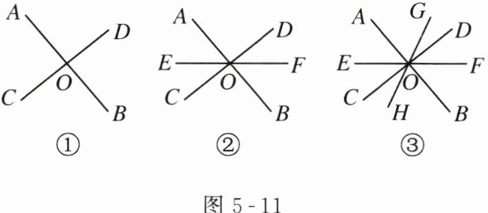 10. 观察图 5-11 中的各图,寻找对顶角(不包括平角),探索规律: