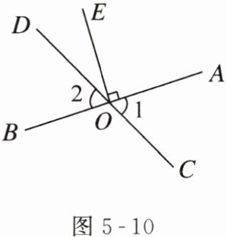 9. 如图 5-10,$\angle 1与\angle 2$为对顶角,$\angle AOE = 90^{\circ}$,$\angle BOC = 5\angle DOE$.求$\angle 2$的度数.