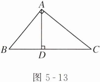 4. 如图5-13,$ AB \perp AC $,$ AD \perp BC $,垂足为点 $ D $,则点 $ B $ 到直线 $ AC $ 的距离是线段____的长,与 $ \angle B $ 相等的角是____.