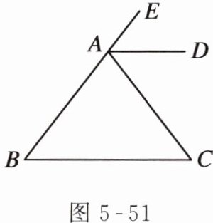 6. 如图 5 - 51,已知 $ AD $ 平分 $ \angle CAE $,且 $ AD // BC $。如果 $ \angle BAC = 80^{\circ} $,那么 $ \angle B $ 的度数是______。