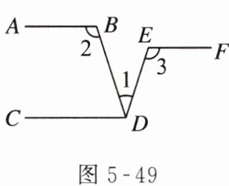 4. 如图 5 - 49,$ AB // CD // EF $,若 $ \angle 2 = \angle 3 = 108^{\circ} $,则 $ \angle 1 = $______。