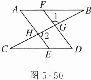 5. 如图 5 - 50,已知 $ \angle 1 $ 与 $ \angle 2 $ 互补,$ \angle A = \angle D $,写出图中互相平行的直线是______。