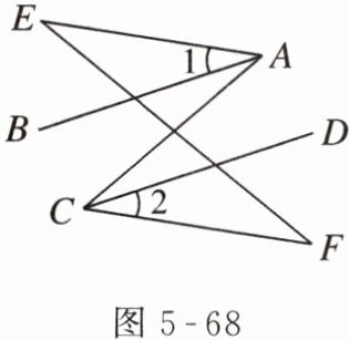 5. 如图 5 - 68,已知 $ AB // CD $,$ \angle 1 = \angle 2 $,则 $ \angle E $与 $ \angle F $的大小关系是______.
