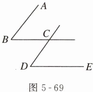 6. 如图 5 - 69,直线 $ AB // CD $,$ DE // BC $.如果 $ \angle B $比 $ \angle \alpha $多 $ 10° $,$ \angle D $是 $ \angle \alpha $的余角,那么 $ \angle B = $______度.