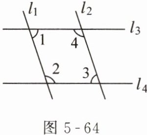 (4)若 $ \angle 1 + $______ $ = 180° $,则 $ l_3 // l_4 $,$ \angle 3 + $______ $ = 180° $.