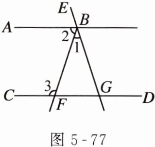 15. 如图 5 - 77,已知 $ AB // CD $,$ \angle 1 : \angle 2 : \angle 3 = 1 : 2 : 3 $.试说明 $ BA $平分 $ \angle EBF $.
