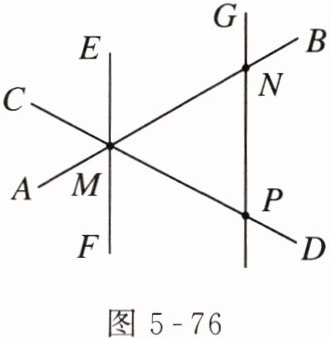 14. 如图 5 - 76,已知 $ \angle AMF = \angle BNG = 75° $,$ \angle CMA = 55° $,求 $ \angle MPN $的度数.