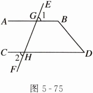 13. 如图 5 - 75,直线 $ EF $与直线 $ AB $,$ CD $分别相交于点 $ G $,$ H $.若 $ \angle 1 = \angle 2 $,$ \angle D = 50° $,求 $ \angle B $的度数.