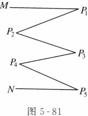 (3)如图 5 - 81,已知 $ MP_{1} // NP_{5} $,那么 $ \angle P_{1} $,$ \angle P_{2} $,$ \angle P_{3} $,$ \angle P_{4} $,$ \angle P_{5} $ 之间的关系如何?