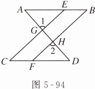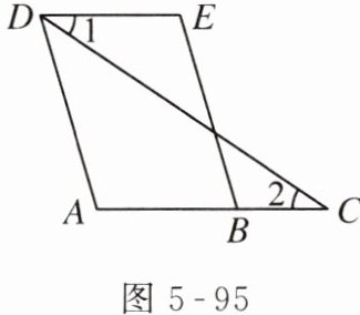 (2) 如图 5 - 95,$AD // BE$,$\angle 1 = \angle 2$,$\angle A与\angle E$相等吗?试说明理由.