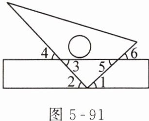 8. (六盘水) 直尺与三角板按如图 5 - 91 所示的方式叠放在一起,在图中所标记的角中,与$\angle 1$互余的角有【 】
