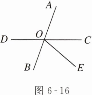 23. 如图 6 - 16,直线 $ AB $ 与直线 $ CD $ 相交于点 $ O $,且 $ OB $ 平分 $ \angle DOE $. 如果 $ \angle COE = 40^{\circ} $,那么 $ \angle AOD $ 的度数是 【 】