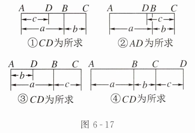24. 如图 6 - 17,各图中所求线段能表示 $ a + b - c(a + b > c) $ 的是 【 】
