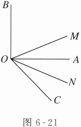 31. 如图 6 - 21,已知 $ \angle AOB $ 是直角,$ \angle AOC $ 是锐角,$ ON $ 平分 $ \angle AOC $,$ OM $ 平分 $ \angle BOC $.
