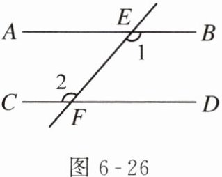 6. 如图 6 - 26 所示,已知 $ \angle 1 = \angle 2 $,根据______,可得 $ AB // CD $。
