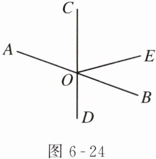 4. 如图 6 - 24,直线 $ AB $ 与 $ CD $ 相交于点 $ O $。若 $ \angle BOE = 30^{\circ} $,且 $ OC $ 是 $ \angle AOE $ 的平分线,则 $ \angle COE = $______。