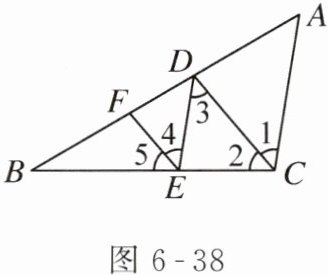 21. 如图 6 - 38,$ DE // AC $,$ CD $ 平分 $ \angle ACB $,$ EF $ 平分 $ \angle BED $。
