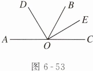 (1)如图 6 - 53,若$\angle AOB与\angle BOC$为邻补角,则$\angle DOE = $______度。