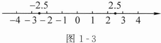 分析:从数轴上看,到原点的距离等于 $ 2.5 $ 的点应该分别位于原点的两旁,并且与原点的距离均为 $ 2.5 $ 个单位长度,所以这两个点所表示的数为 $ - 2.5 $ 和 $ + 2.5 $,如图 1 - 3 所示.