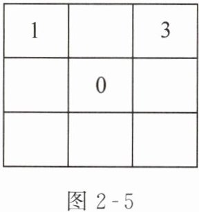 17. 在如图2-5所示的每个方格里分别填写一个数,使每行、每列、每条对角线上的三个数之和都等于0.