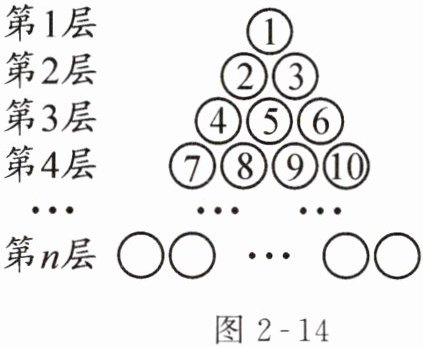 (1) 自上而下在每个圆圈中按图 2-14 的方式填上一串连续的正整数$1$,$2$,$3$,$4$,…$$,那么第 10 层的左边圆圈中的数是____.