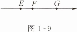 9. 如图 1-9,在数轴上从左到右有 $ E $,$ F $,$ G $ 三点,其中 $ EF = 1 $,$ FG = 2 $。设点 $ E $ 的坐标为 $ x $,则下列说法错误的是 【 】