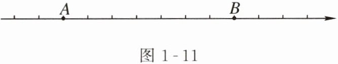 14. 如图 1-11,数轴上相邻两个刻度之间的距离为 $ 1 $ 个单位长度,点 $ A $ 表示的数是 $ -4 $。