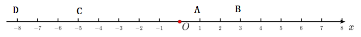 13. 数轴上 $ A $,$ B $,$ C $,$ D $ 四点表示的数分别为 $ 1 $,$ 3 $,$ -5 $,$ -8 $,在数轴上表示这四点,借助数轴写出: