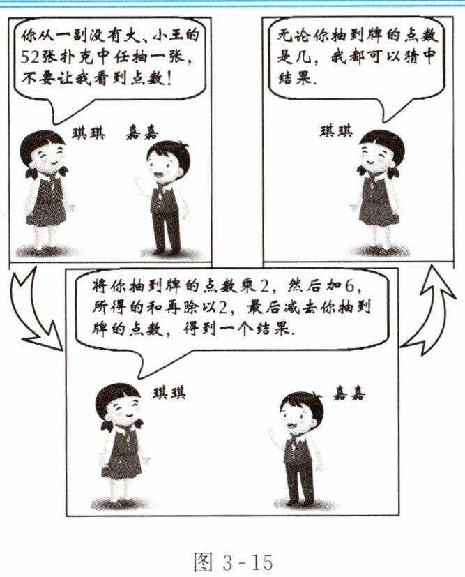 17.(河北)如图3-15,琪琪和嘉嘉做数学游戏:假设嘉嘉抽到牌的点数为$x$,琪琪猜中的结果应为$y$,则$y$等于 【 】