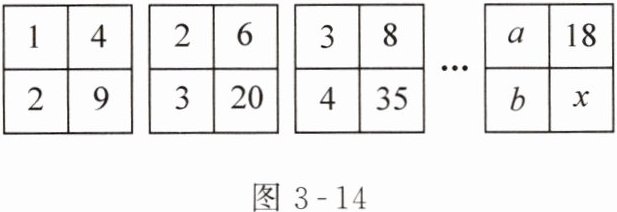 16.(娄底)如图3-14,下列各正方形中均有四个数,相同位置上的数按从左到右的顺序排列都有规律,根据这些规律可以确定$x$的值为 【 】