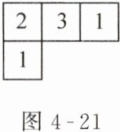 7. 图 4-21 是由几个小立方块所搭几何体的俯视图,小正方形中的数字表示该位置竖直放小立方块的个数。请画出这个几何体的主视图和左视图。