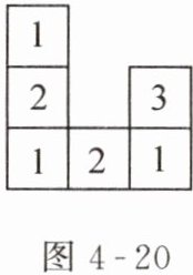 6. 由几个小立方块搭成的几何体的俯视图如图 4-20 所示,小正方形中的数字表示在该位置上小立方块的个数,那么这个几何体的左视图为 …………【 】
