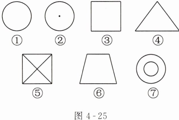 11. 图 4-25 是一些立体图形的俯视图,试说出下列各图可能是哪一种立体图形的俯视图,并画出相应的立体图形。