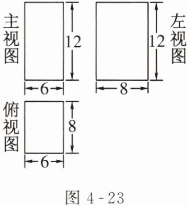9. 一个几何体的主视图、左视图、俯视图如图 4-23(尺寸单位:cm)所示,根据图中数据计算这个几何体的体积和表面积。