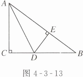 15. (湘西州试题改编) 如图 4 - 3 - 13, 在 $ \mathrm{Rt}\triangle ABC $ 中, $ \angle C = 90^{\circ},AD $ 平分 $ \angle CAB,DE \perp AB $, 垂足为点 $ E,AC = 6,BC = 8 $.