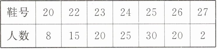 ,样本是八(2)班 20 名男生所穿鞋子的鞋号