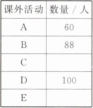 5. 某学校准备为七年级学生开设$A$,$B$,$C$,$D$,$E共5$项课外活动项目,选取了若干名学生进行“我最喜欢的课外活动项目”调查,将调查结果绘制成了如下不完整的统计图表.