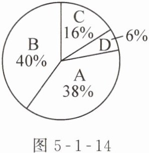 2. 某中学八(3)班有$50$名同学,综合素质评价的“运动与健康”方面的等级如扇形统计图$5 - 1 - 14$,该班“运动与健康”评价等级为$A$的人数为