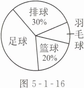 4. 某校对八年级爱好排球、足球、篮球、羽毛球的学生人数进行统计,得到如图$5 - 1 - 16$的扇形统计图.已知爱好排球的有$21$人,爱好足球的人数是爱好羽毛球的人数的$4$倍,则下列结论正确的是……【