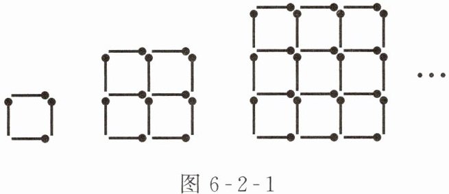 19. 图 6 - 2 - 1 是用火柴棍摆成边长分别是 1,2,3 根火柴棍长的正方形,当边长为$n$根火柴棍长时,摆出的正方形所用的火柴棍的根数(用含$n$的式子表示,$n$为正整数)为 【