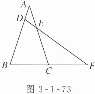 15. 如图 3 - 1 - 73,在$\triangle ABC$中,$AB = AC$,点$D在AB$边上,点$F在BC$边的延长线上,$DF交AC于点E$。若$AD = DE$,$CE = CF$,求$\angle A$的度数。
