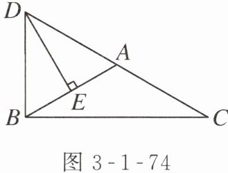 16. 如图 3 - 1 - 74,$AB = AC$,$\angle BAC = 120^{\circ}$,$DE垂直平分AB$,垂足为点$E$,交$CA的延长线于点D$,连结$BD$。