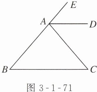 13. 如图 3 - 1 - 71,在$\triangle ABC$中,$AB = AC$,$AD平分\triangle ABC的外角\angle EAC$。