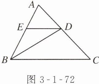 14. 如图 3 - 1 - 72,$BD是\triangle ABC$的角平分线,点$E在AB$上,$DE = BE$。
