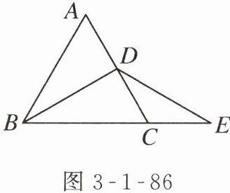 12. (1)如图 3 - 1 - 86,在等边$\triangle ABC$中,$BD平分\angle ABC$,延长$BC到E$,使$CE = AD$,连结$DE$。试判断$BD与DE$的大小关系,并说明理由。