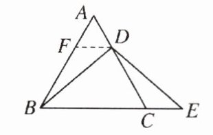 因为$\angle FBD+\angle BDF = \angle AFD = 60^{\circ}$,$\angle CDE+\angle E=\angle BDC$(三角形外角性质:三角形的一个外角等于不相邻的两个内角之和),且$\angle AFD = \angle ACB = 60^{\circ}$,$\angle DBC+\angle BDC+\angle C = 180^{\circ}$,$\angle C = 60^{\circ}$,$\angle DBC=\frac{1}{2}\angle ABC = 30^{\circ}$,经过角度推导可得$\angle DBC=\angle E$。