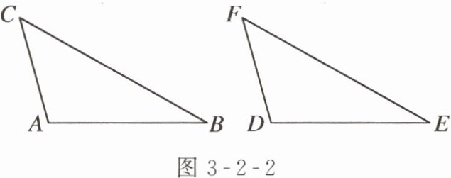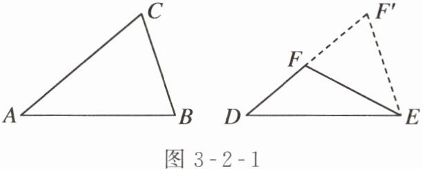 同学甲依题意画出如图$3 - 2 - 1$的示意图,他肯定地回答$\triangle ABC与\triangle DEF$不一定全等。